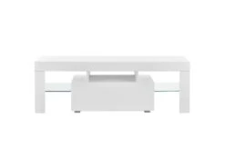 Ce meuble modern et décoratif met non seulement votre télé en valeur, mais vous permet de personnaliser l’ambiance de votre environnement grâce à l’éclairage LED intégré. Vous pourrez changer de la couleur de l’éclairage avec la télécommande. Le banc est muni de plusieurs surface de stockage et d’un tiroir.