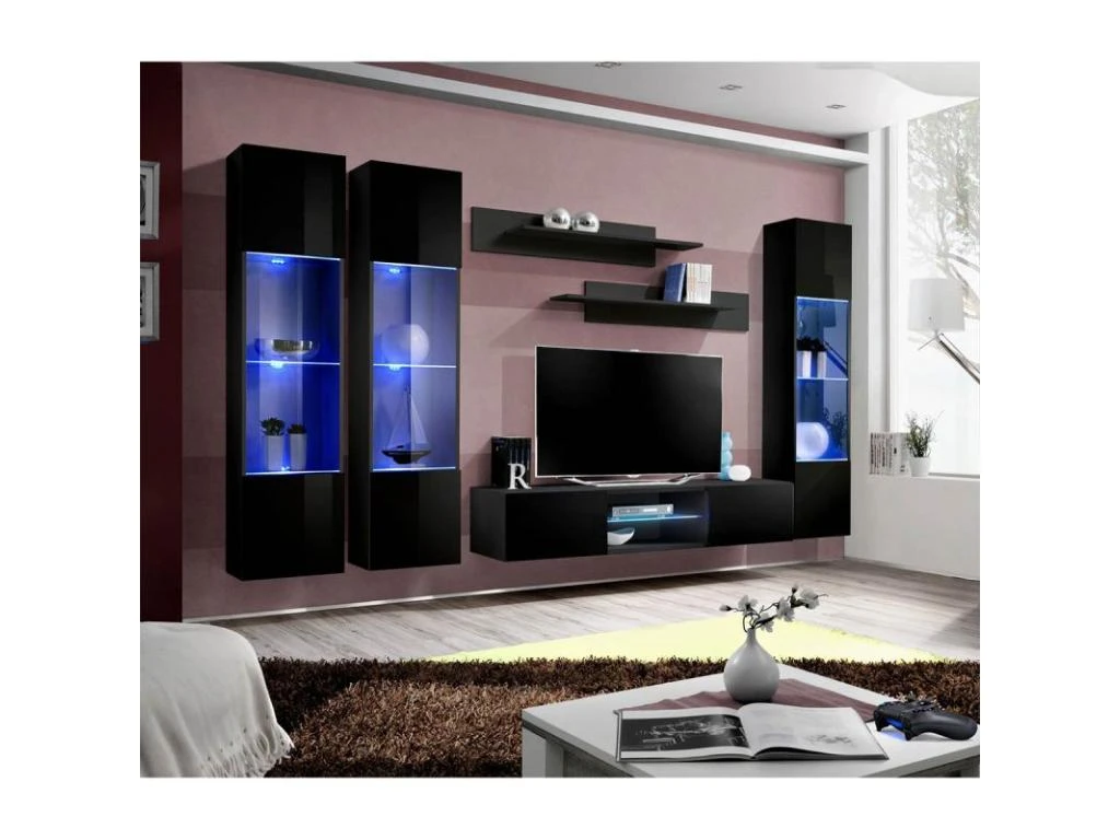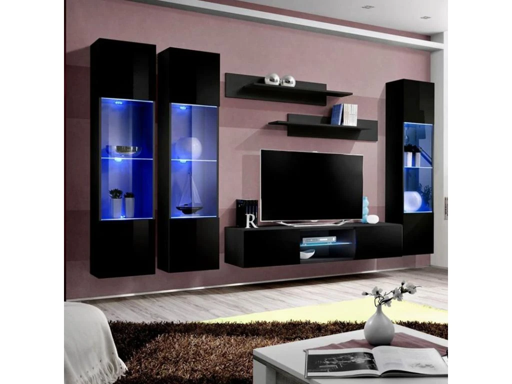 Meuble TV Mural Design « Fly XLIV » 310cm Noir