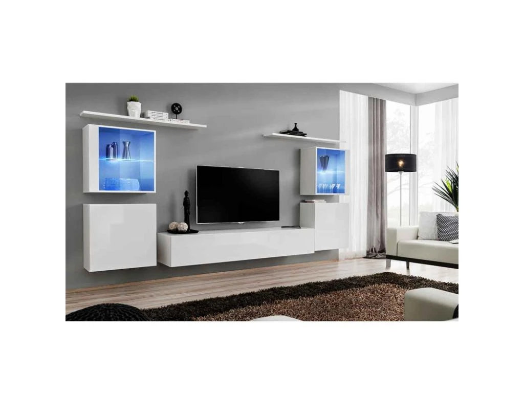 Meuble TV Mural Design « Switch XIV » 320cm Blanc