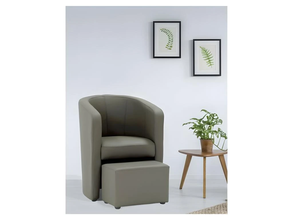 Petit Fauteuil Crapaud Rembourrée Avec Pieds Noirs Pour Salle à Manger, Salon, Entrée & Chambre-Gris