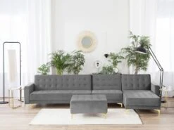 Canapé Angle à Gauche Modulable – Aberdeen – Convertible Avec Pouf Ottoman En Velours Gris Moderne