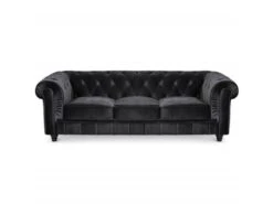 Canapé Chesterfield 3 Places – Couleurs – Velours Noir, Types De Canapé – 3 Places Chesterfield