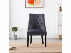 Chaise Avec Accoudoirs – Velours Et Acier Inoxydable – Gris Et ChromĂ© – PERIA De Pascal MORABITO