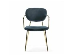 Chaise Avec Accoudoirs – Velours Et Acier Inoxydable – Bleu Et ChromĂ© – PERIA De Pascal MORABITO