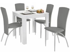 Ensemble Table + 4 Chaises En MDF Et MĂ©tal – Naturel Et Blanc – MAEWIN