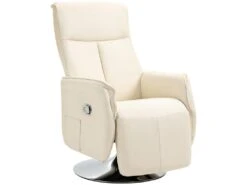 Fauteuil Relax Contemporain Inclinable Pivotant Grand Confort Revêtement Synthétique Crème