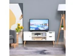 Meuble Tv Sena Design 100 % Panneau De Particules PlaquĂ© MĂ©laminĂ© En Couleur Blanc120x47,4×44,6cm