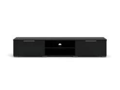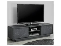 Meuble TV Design PARIS-HIT 140 Cm, 2 Portes Et 2 Niches, Coloris Noir Mat Et Noir Brillant