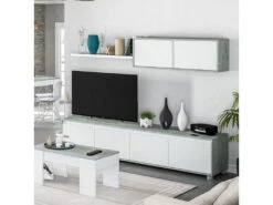 Ensemble De 3 Meubles Design Pour Votre Salon Collection MOZES. Coloris Blanc Et ChĂȘne