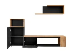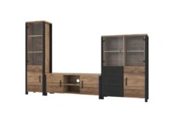 Ensemble 3 Meubles De Salon Collection WINDSOR. Coloris Gris Anthracite Et ChĂȘne FoncĂ©.
