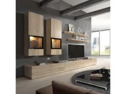 Ensemble Meubles De Salon Design Collection RAMOS. Coloris Chêne Et Noir. LED Intégrées.