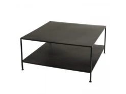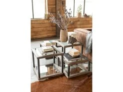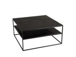 ALIDA – Set De 3 Tables D’appoint Gigogne Plateaux Bois Teck Recyclé Structure Métal Noir