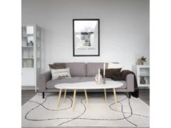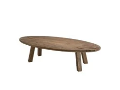 BEANNY – Table Basse Grand Modèle Forme Ovale Plateau MDF Blanc Pieds En HĂ©vĂ©a Naturel
