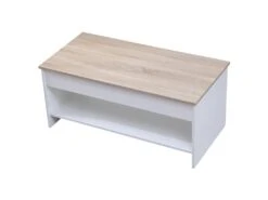 Table Basse Avec Plateau Relevable – Decor Chene Et Noir – L 100 X P 50/72 X H 42/55 Cm