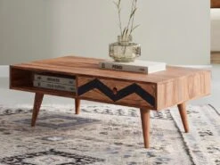 Table Basse Avec 1 Tiroir Et 1 Niche En Bois D’acacia Et MĂ©tal – Naturel FoncĂ© Et Noir – ALYONA
