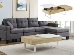 Table Basse Avec Plateau Relevable Et 1 Tiroir En MDF Et MĂ©tal – Naturel Clair – DALAHO