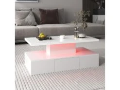 Table Basse Avec Plateau Relevable Et 1 Tiroir – MDF Et Acier – Naturel Et Blanc – BALUN