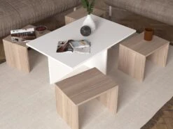 Table Extensible Et Relevable 2 En 1 – MDF Et Acier Inoxydable – Naturel Et Blanc – CAPANI