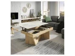 Table Basse Relevable Coloris ChĂȘne DorĂ©/ Marbre – Hauteur 47-58 X Longueur 100 X Profondeur 50 Cm