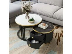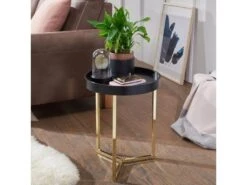 Ensemble De 2 Tables D’appoint Glamour Métalliques Or Et Noir Dimensions: 66,5 X H. 41,5 Cm