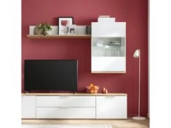 Vitrine Large Design Collection DARWIN. Couleur épicéa Et Noir. 2 Portes, 3 Tiroirs, 3 Niches