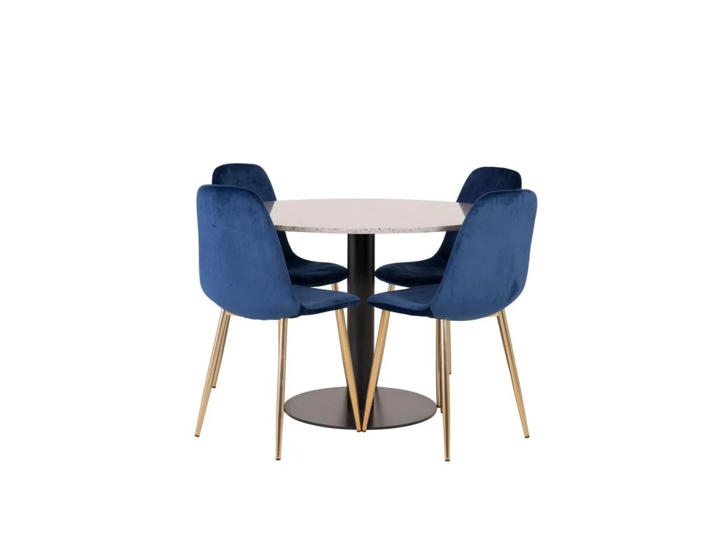 Skate Ensemble Table, Table Noir Et 4 Berit Chaises Velours Beige.