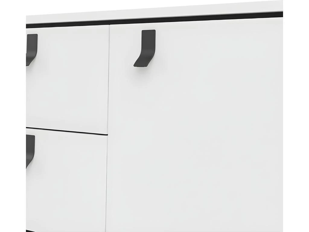 Buffet Haut Avec LED Collection KILES Deux Portes. Coloris Blanc Et Chêne. Porte Vitrée à Droite