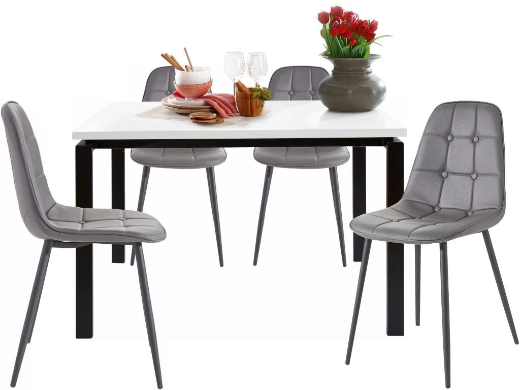 Skate Ensemble Table, Table Noir Et 4 Berit Chaises Velours Beige.