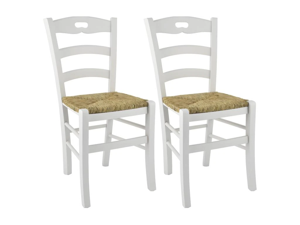 Lot de 2 Chaises Laquées Blanc et Assises en Paille de la gamme Suzy.