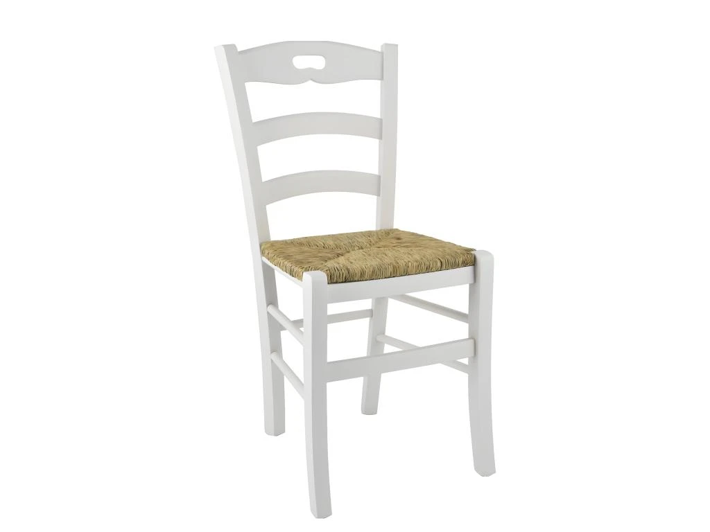 Structure en hêtre massif laqué blanc. Assise en paille. Chaise livrée montée pour une utilisation immédiate.