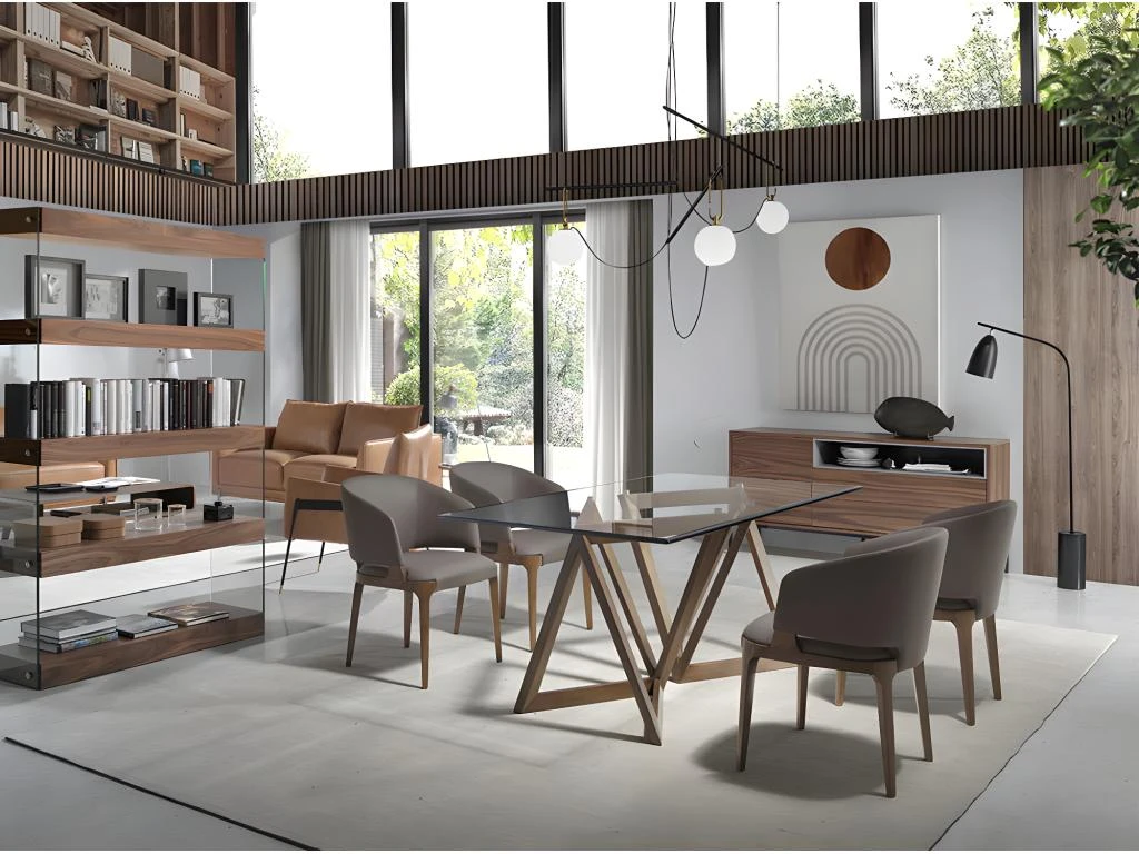 - STYLE: Cette table à manger rectangulaire en verre apportera une touche de modernité à tout type de salon ou de salle à manger. Avec sa structure originale en noyer, elle créera une atmosphère chaleureuse, accueillante et élégante.