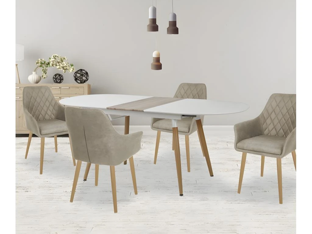 Skate Ensemble Table, Table Noir Et 4 Berit Chaises Velours Beige.
