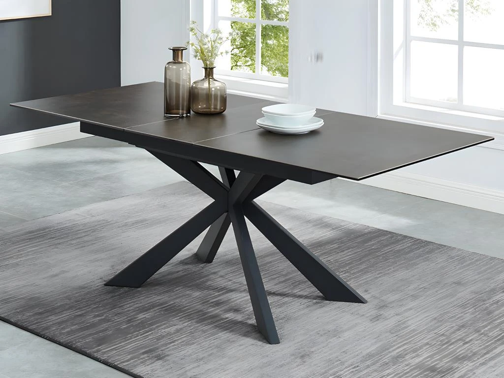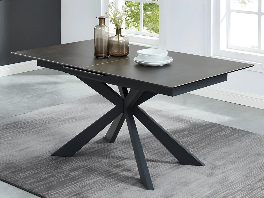 Conçue à partir de matériaux robustes et élégants cette table allie parfaitement la qualité et le design. Ses pieds croisés en métal noir lui confèrent une grande stabilité et une touche d’originalité. Son plateau en céramique, avec son support en verre trempé, lui apportent charme et solidité.