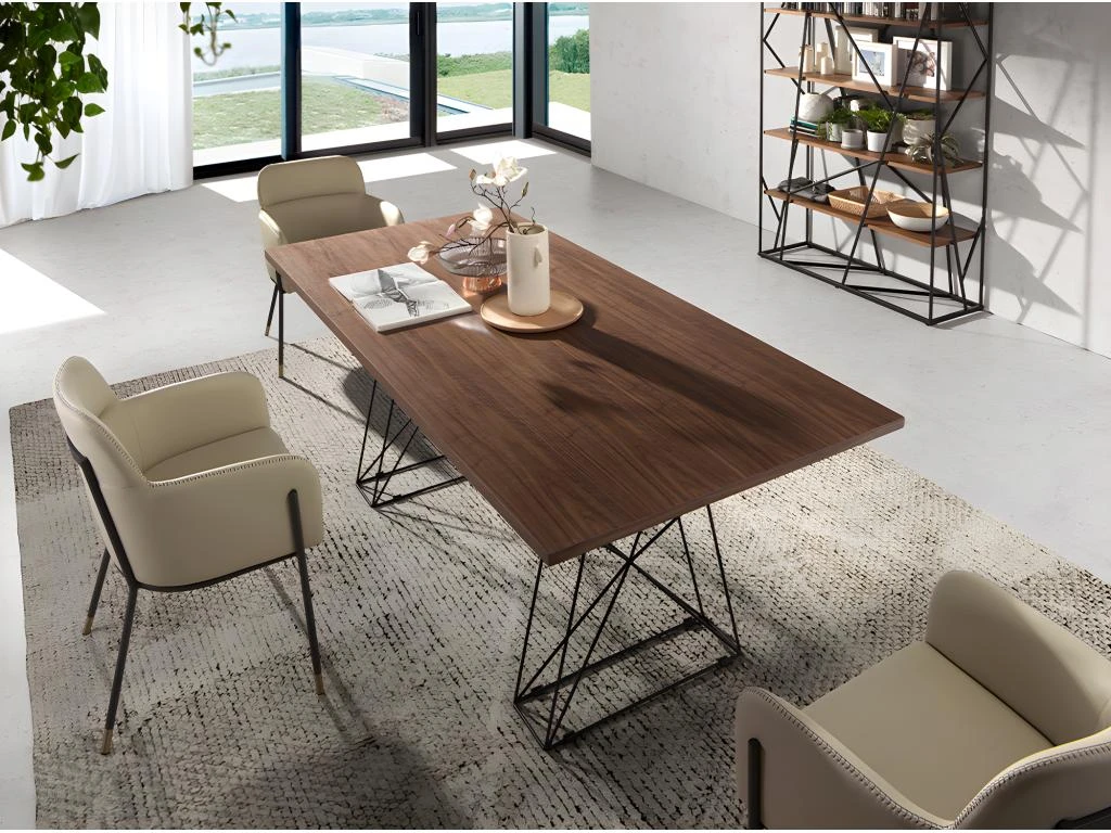 - DÉCORATION ET CONFORT: Cette table de salle à manger rectangulaire, unique et moderne, en bois plaqué noyer et acier inoxydable époxy noir, s’adaptera parfaitement à différents styles de décoration, créant une atmosphère chaleureuse et accueillante.