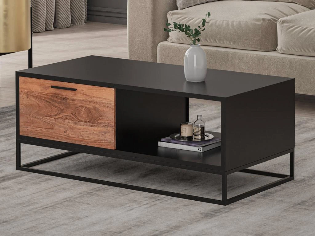 Pratique et doté de multiples rangements, la collection ALYONA apportera charme et caractère à votre intérieur grâce à sa structure en bois et en métal noir. Associez-la à des tons naturels et neutres tels que le beige et le blanc afin d’ajouter une touche d’élégance à votre pièce. Avec sa structure en bois et en métal noir, la table basse ALYONA allie utilité et authenticité, créant ainsi un intérieur harmonieux.