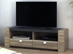 Le design bicolore et l’imitation du grain du bois donnent à la table un look contemporain avec une esthétique naturelle. En même temps, la table est équipée de 16 couleurs de LED différentes afin que vous puissiez obtenir le meilleur éclairage. En termes de praticité, cette table dispose de deux cloisons, qui offrent une énorme capacité de stockage, afin que vous puissiez stocker vos objets efficacement et garder votre espace bien rangé tout le temps.