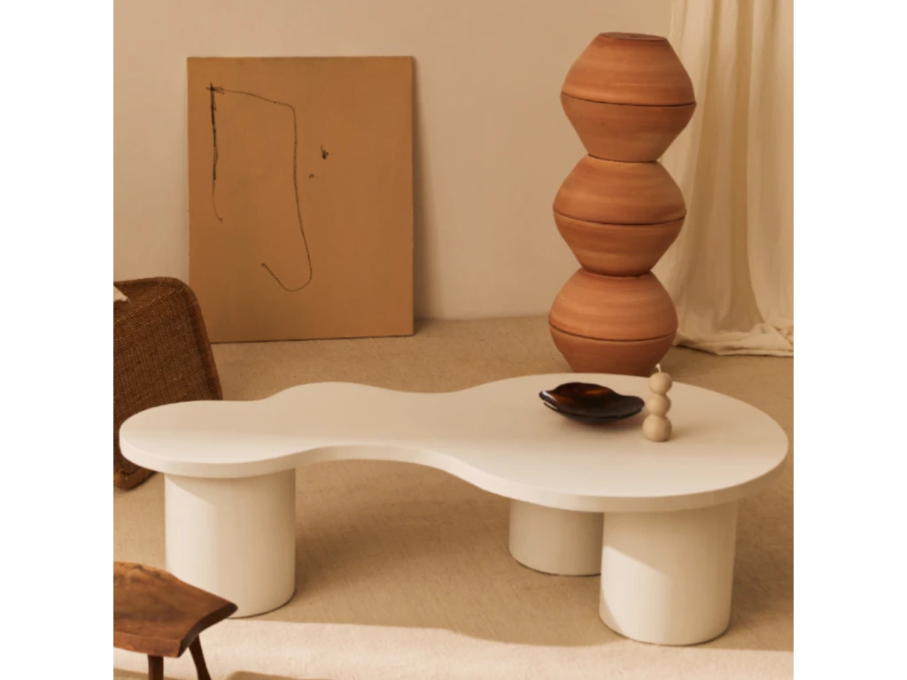 Cette table basse originale, disponible en 2 tailles, se distingue par son plateau aux formes courbes et organiques. Ces caractéristiques, combinées aux trois pieds cylindriques, en font une pièce totalement avant-gardiste. Vous pouvez choisir la finition qui vous plaît le plus : blanc cassé ou gris industriel. Il s’agit d’un modèle entièrement artisanal, produit dans l’atelier de Marc et son équipe dans la commune de La Llagosta (Barcelone).