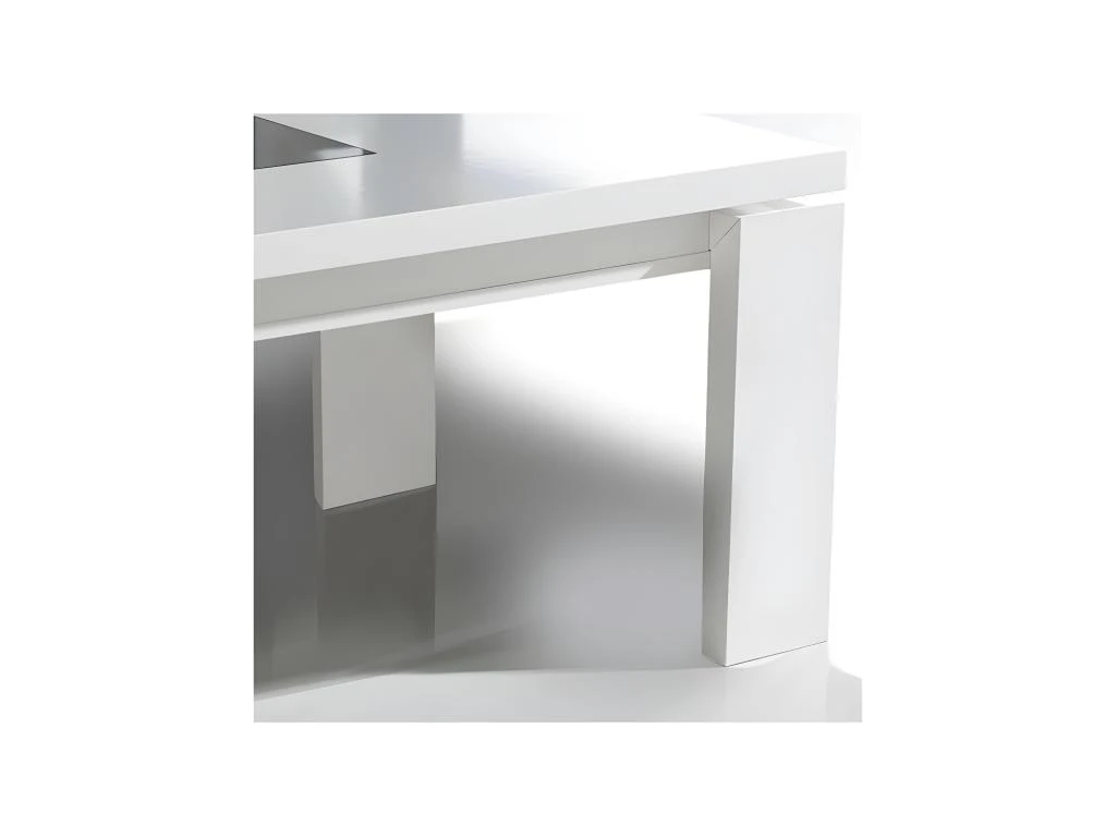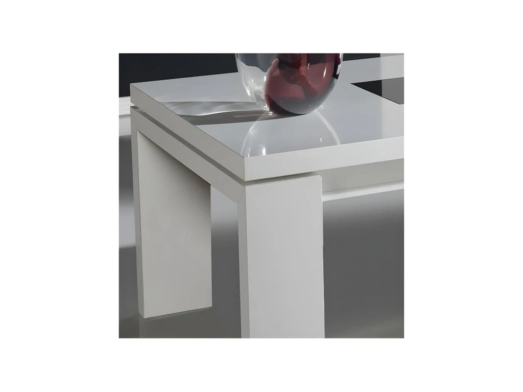 Cette table de salon au design moderne dispose d’une finition laquée blanche avec motif en verre noir. Les lignes aériennes et épurées de cette table lui donnent un style moderne.