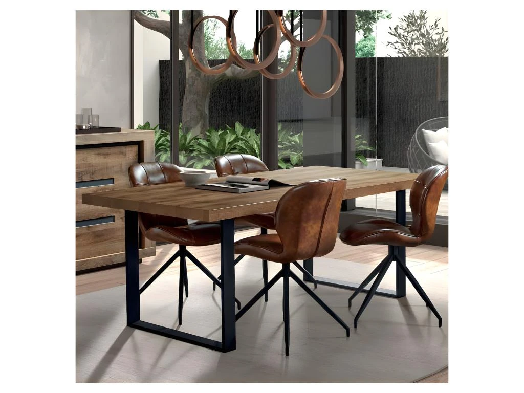 Tendance mobilier Industriel combinée au style des meubles coloniaux pour cette table de repas rectangulaire au look exclusif.