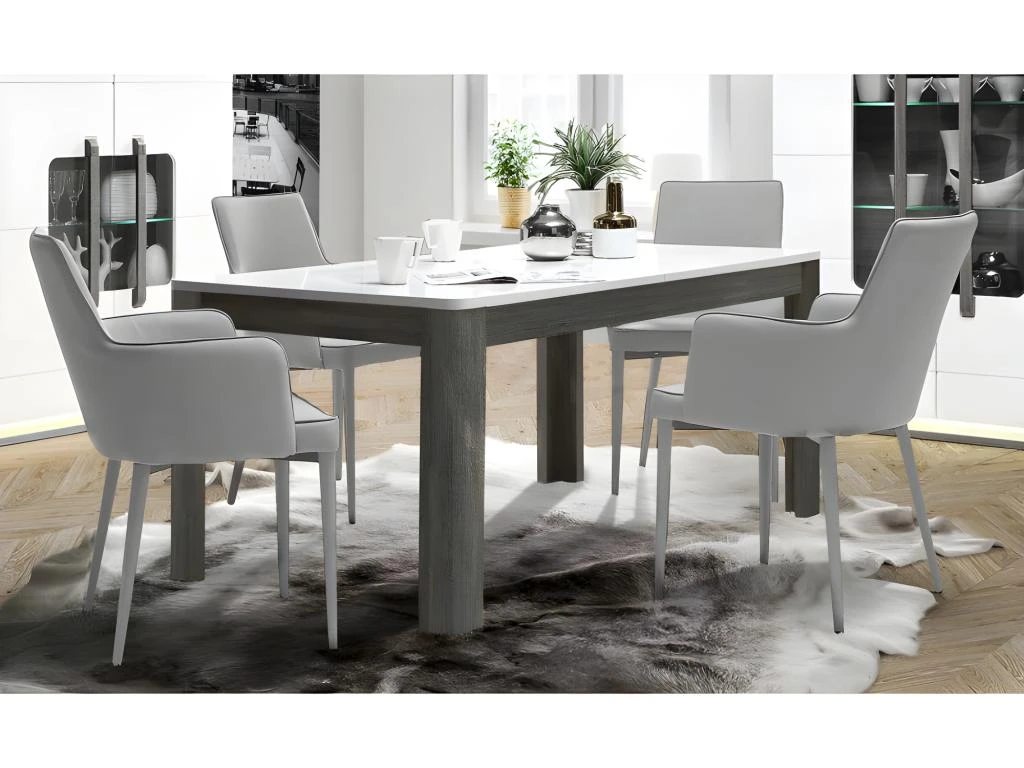 - FINITIONS : plateau décor blanc laqué et piétement décor chêne gris nordique
