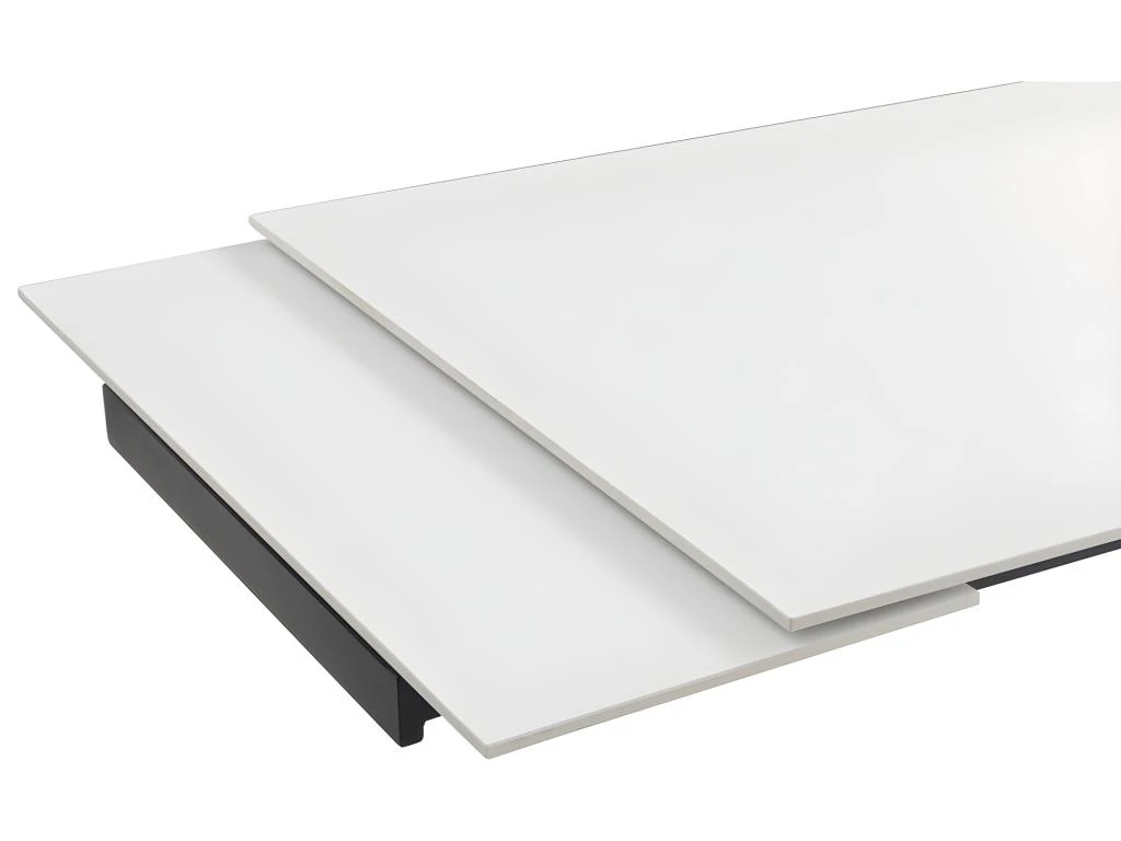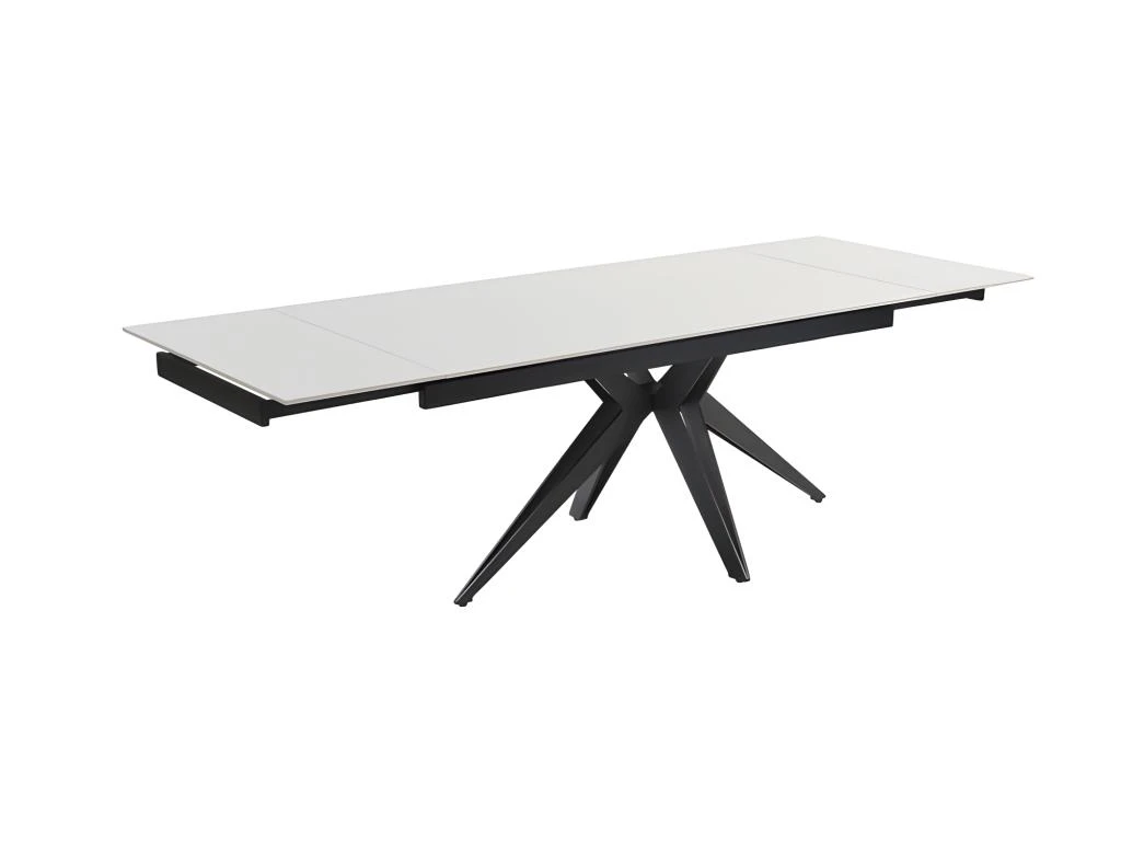 La table personnalisée adaptée à vos envies ! Son plateau en céramique pleine masse de 11mm blanc mat est lumineux et robuste. Attablez jusqu’à 10 personnes grâce à ses 2 rallonges intégrées de 40 cm chacune, pratiques, et simple d’utilisation. Elle passe ainsi de 160 à 240 cm. Son plateau en céramique lui confère des qualités remarquables : résistance aux rayures, insensible aux taches diverses, et ne craint pas les différences de températures. Son piètement étoile ajouré en métal noir vous assure stabilité, robustesse et finesse !
