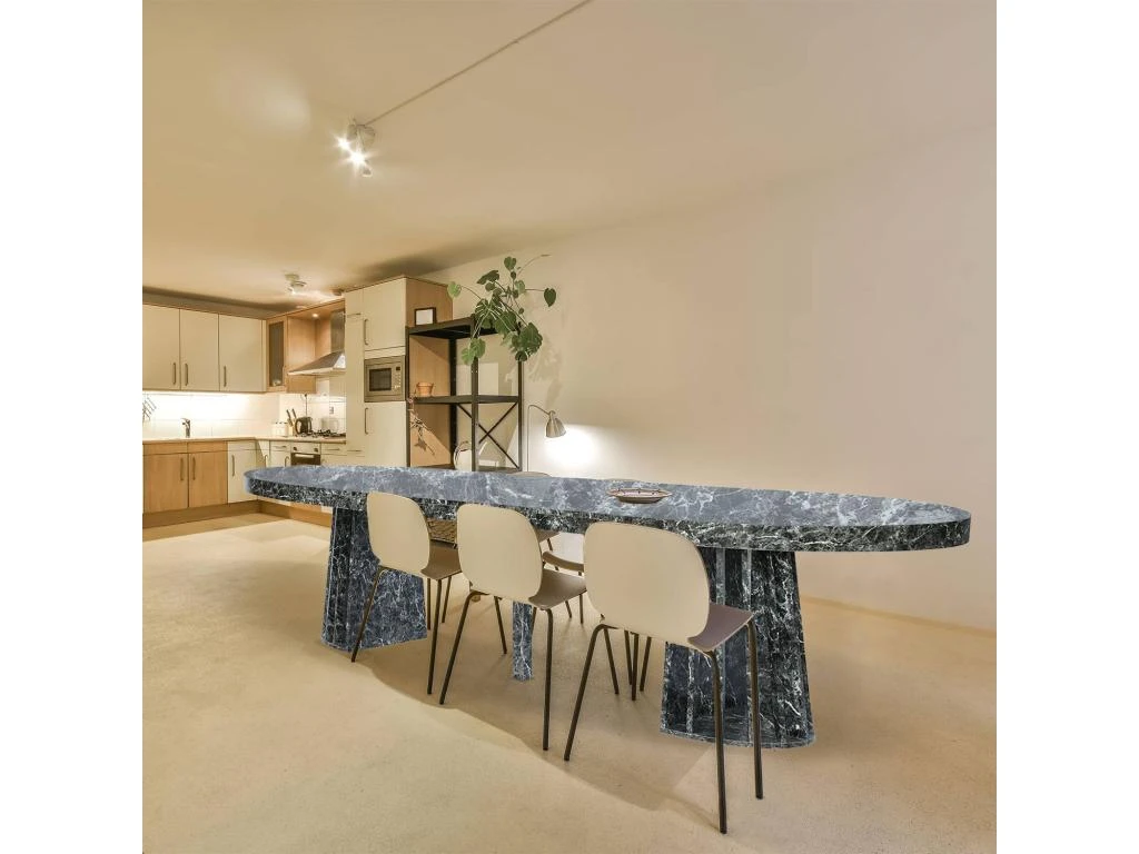 Robustesse et stabilité seront au rendez-vous pour tous vos repas du quotidien ! Succombez au design original et épuré de cette table moderne au revêtement effet marbre noir ultra tendance!