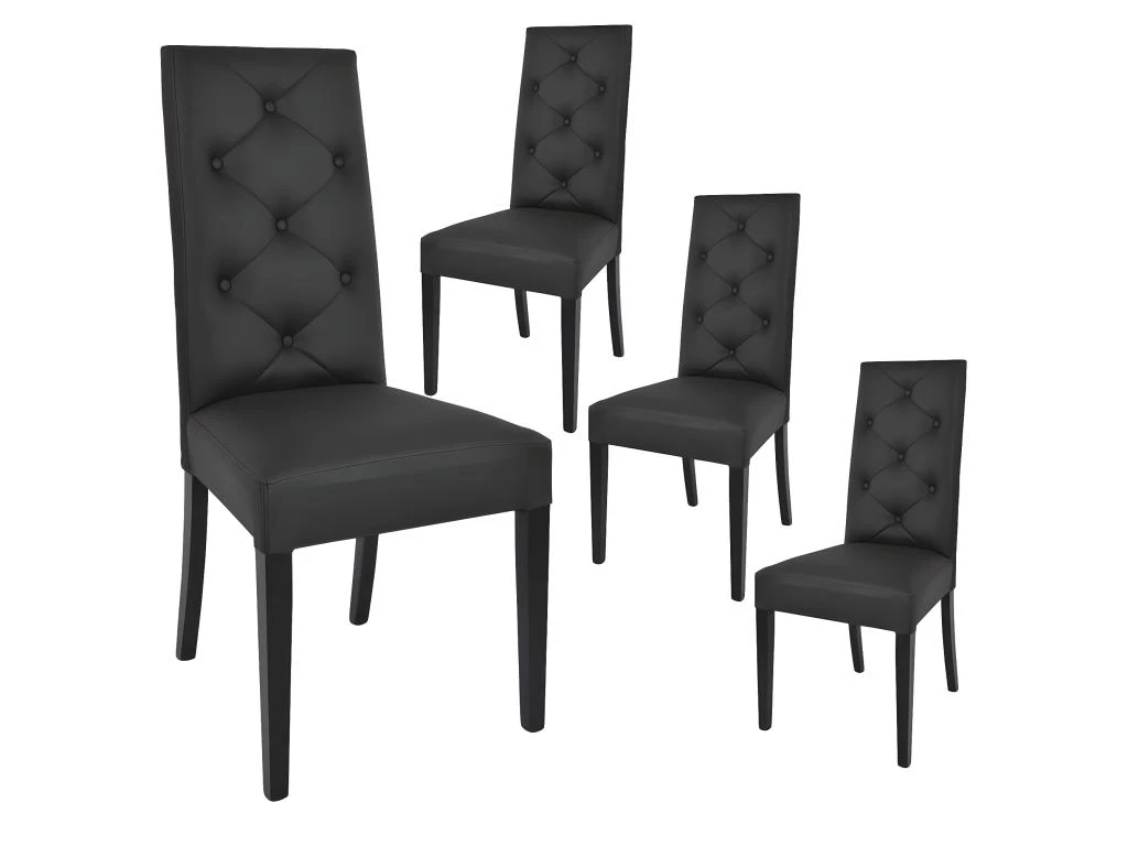 Lot de 4 Chaises Simili Noir et Pieds Laqués de la gamme Trevi.